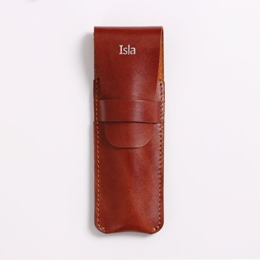 Leather Brush Marker Case Personalised Flat Pencil Case