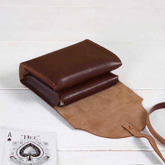 Personalisierte Doppeldeck-Spielkarten-Aufbewahrungshülle aus Leder